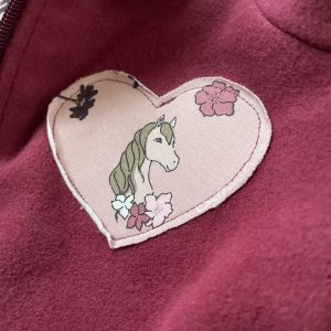 Kuschelige Mädchenjacke mit einer niedlichen Pferde-Applikation.
