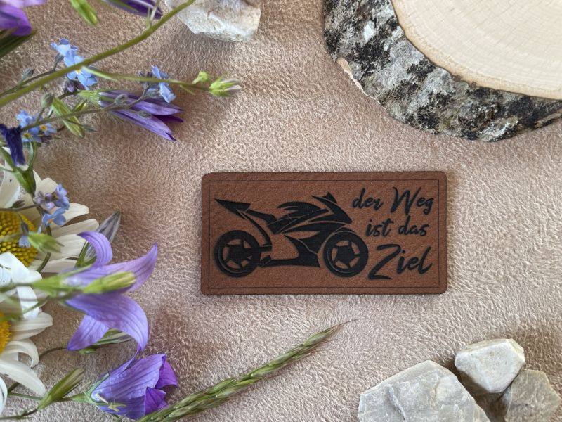 Kunstlederlabel „Der Weg ist das Ziel“ Bike