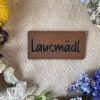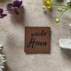 Weiches Lederlabel „echt leiwaund“, ideal zum Verzieren von individuellen Nähstücken.