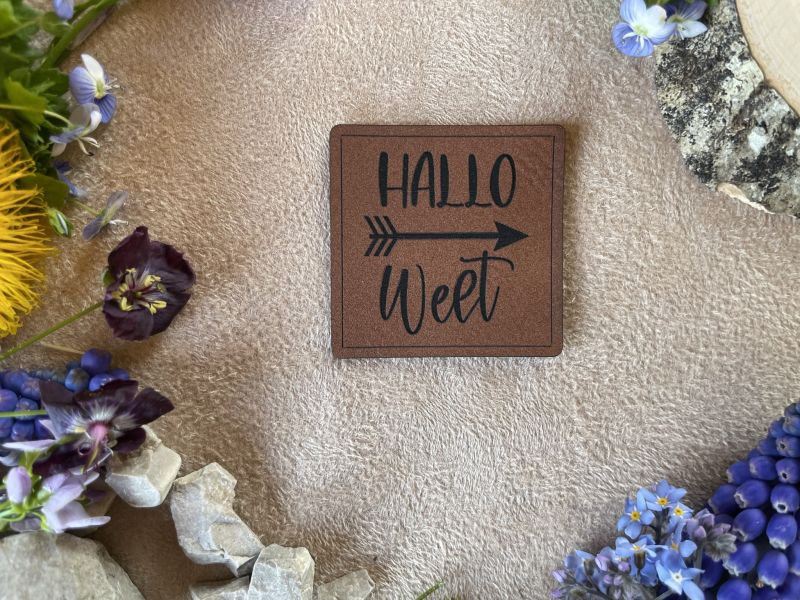 Kunstlederlabel „Hallo Welt“