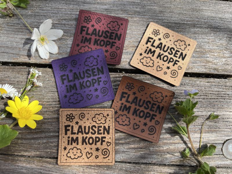 Lederlabel Flausen im Kopf 4x4cm