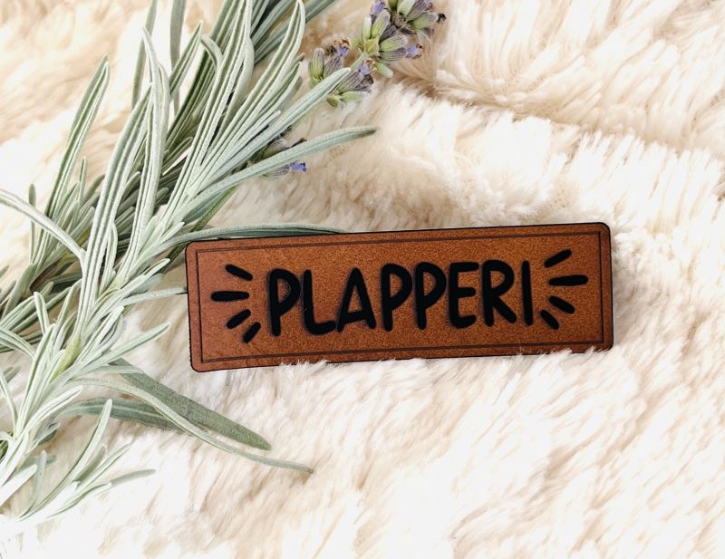 Weiches Lederlabel in schweizerdeutsch „Plapperi“