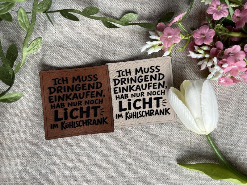 Mit diesem 54×54 mm großen Kunstlederlabel bekommt dein Einkaufsbeutel endlich eine Stimme: „dringend einkaufen“ – witzig, frech und absolut alltagstauglich!