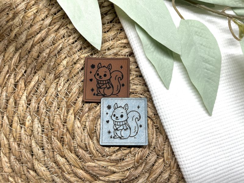Das Lederlabel „Eichhörnchen Winter“ kombiniert ein liebevolles Tiermotiv mit winterlicher Wärme.