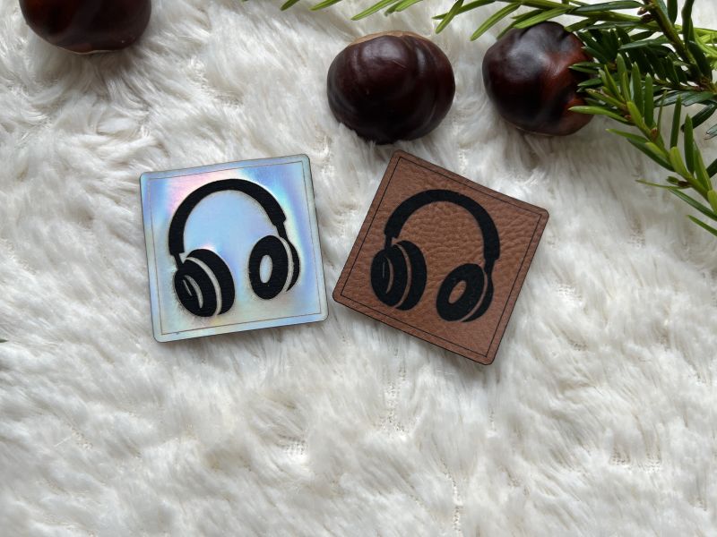Unser hochwertiges Lederlabel mit Kopfhörer verbindet Liebe und Leidenschaft zur Musik in einem eleganten Design.